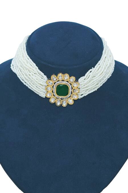 Green Stone And Pearls Embellished Choker Set