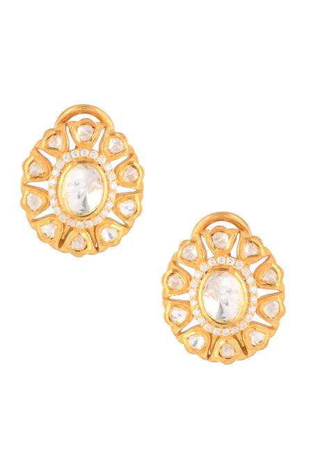 Gold stud earrings featuring cutwork details and embellished with semi-precious stones