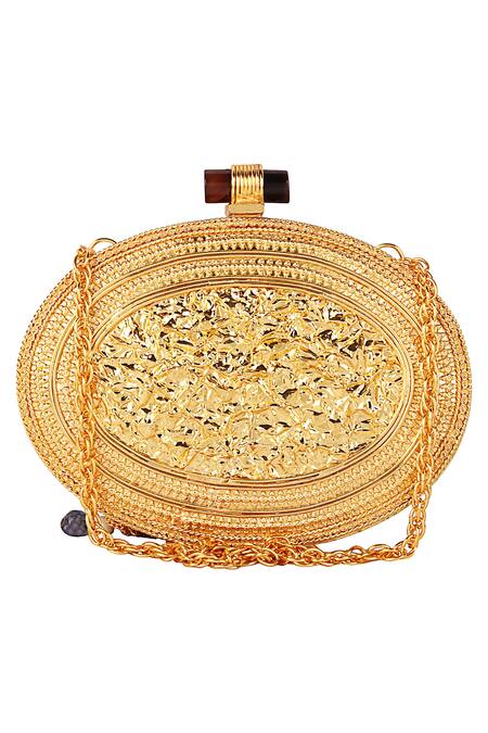 Buy_Puneet Gupta_Gold Stones Embellished Oval Clutch_Online_at_Aza_Fashions