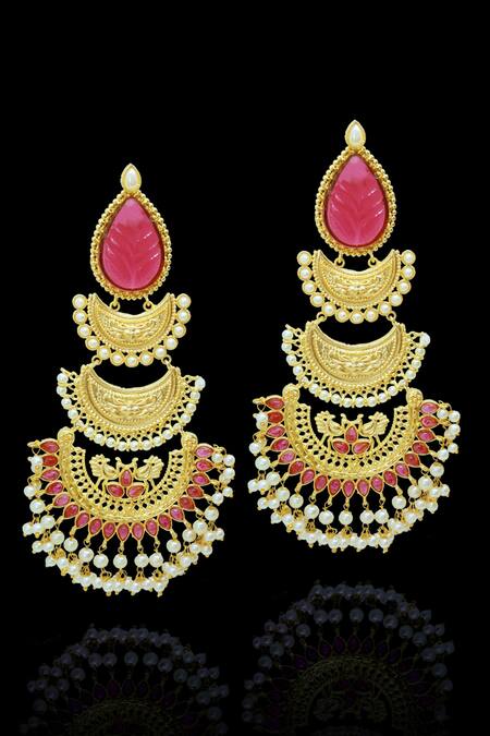 Gold Plated Stone And Beads Embellished Tiered Chandbalis