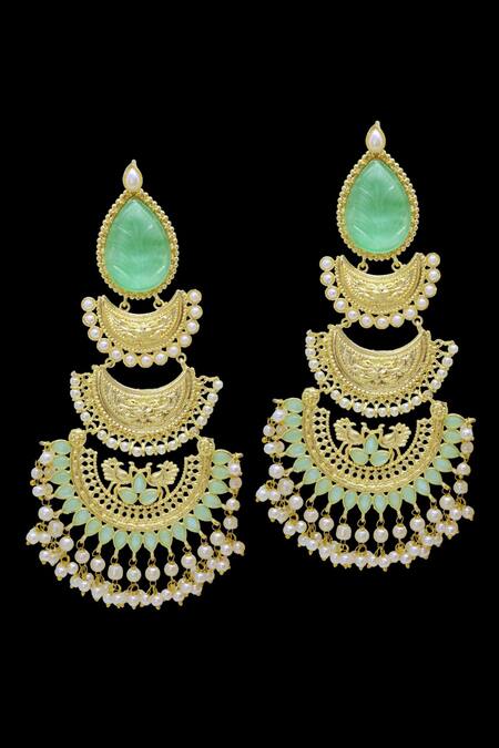 Buy_BelsI'S_Gold Plated Stone And Beads Embellished Tiered Chandbalis_at_Aza_Fashions