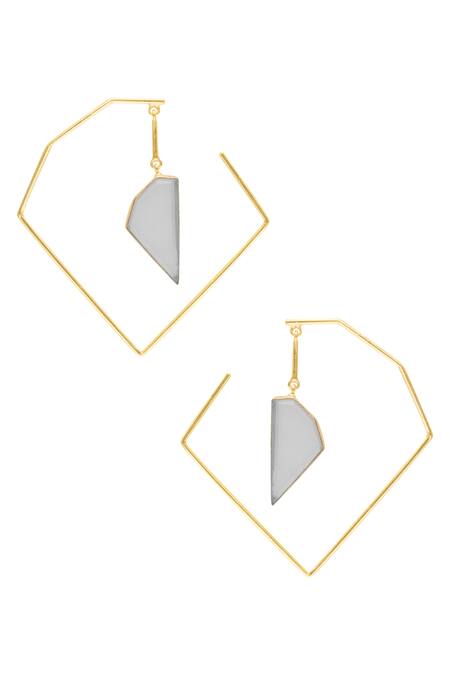 Gold statement earrings featuring an abstract geometric design with encrusted onyx stones