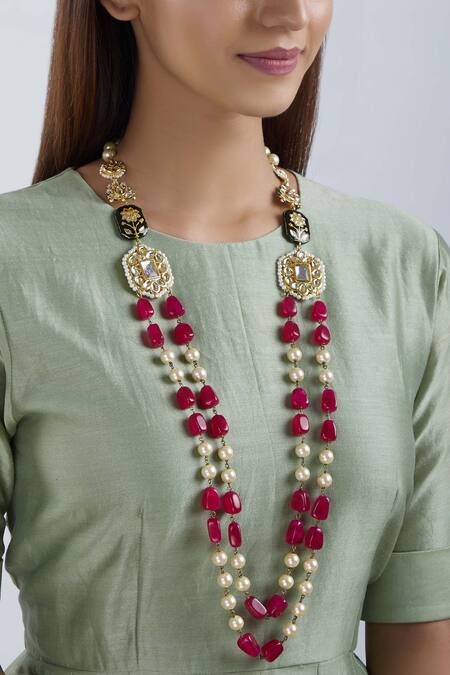 Stones with floral carving, Bead studded dual strings, Length:40 cm, Width:3.5 cm, Weight:180 gm