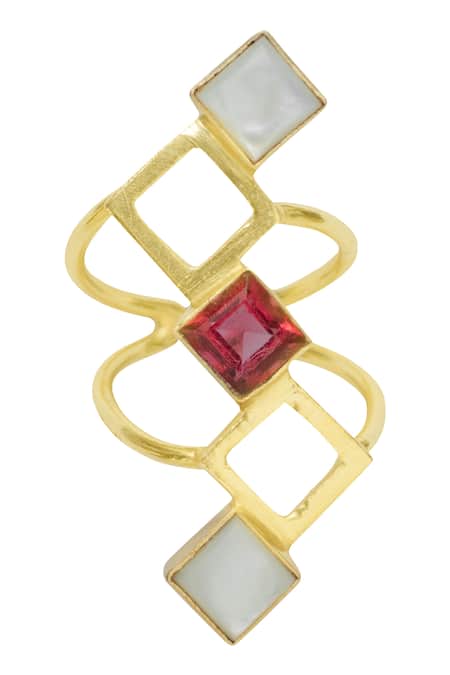 Buy_Varnika Arora_Gold Plated Stones Ring_at_Aza_Fashions