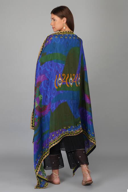 Stone button detailing on kurta, Egyptian motif print on dupatta