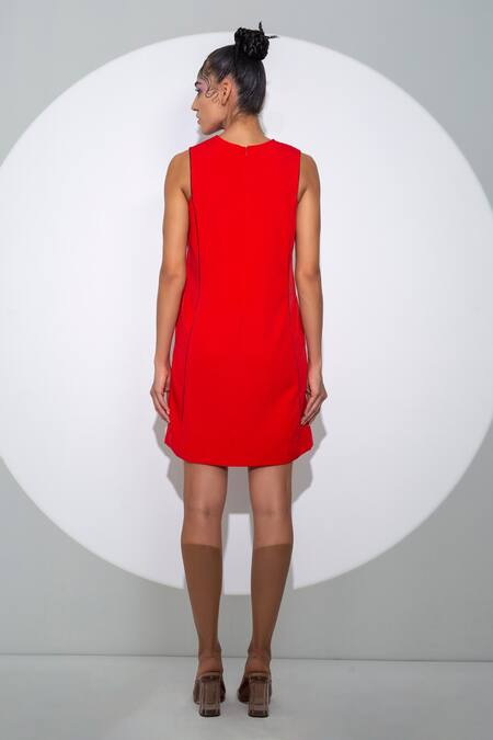 Red sleeveless dress crafted from crepe fabric featuring a round neckline and cut-out back detail