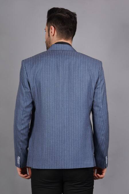 Buy_Soniya G_Blue Wool, Tweed Stripe Pattern Blazer_Online_at_Aza_Fashions