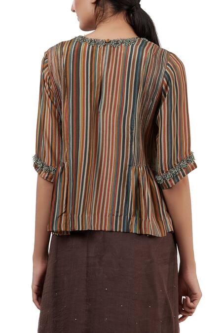 Shades Of India_Multi Color Silk Cotton Striped Top_Online_at_Aza_Fashions