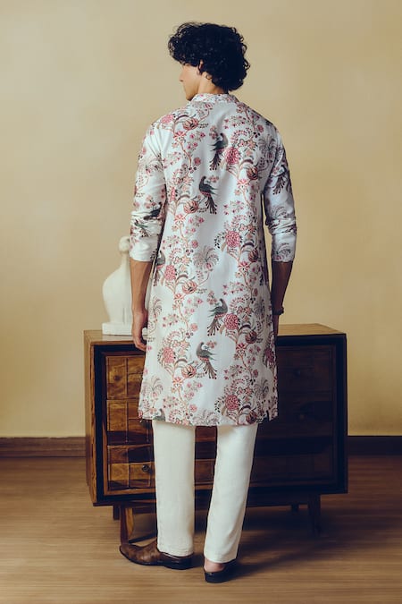 Peacock chintz print, Straight kurta silhouette, Mandarin collar