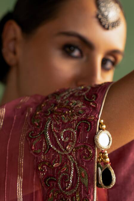 Mirror tassel detail on sleeves, Thread embroidery on yoke and cuffs