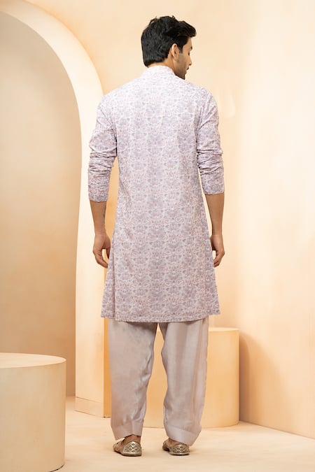 Multi color kurta featuring floral print with thread embroidery and a mandarin collar. Paired with a matching salwar in a relaxed fit.