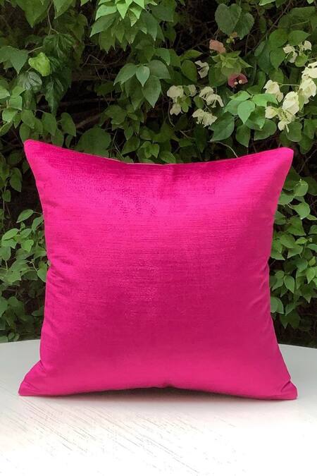 Hot pink square shaped cushion cover in velvet base.