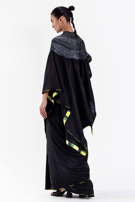 Black Silk Handwoven High Round Pre-draped Kaftan Saree With Running Blouse