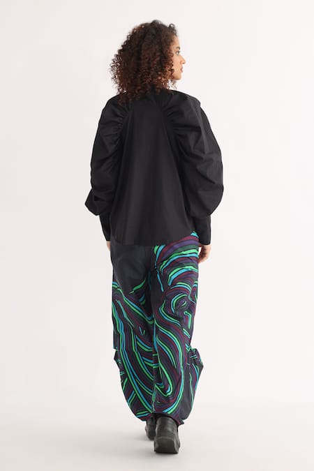 All-over swirl print design, Draped dhoti style silhouette