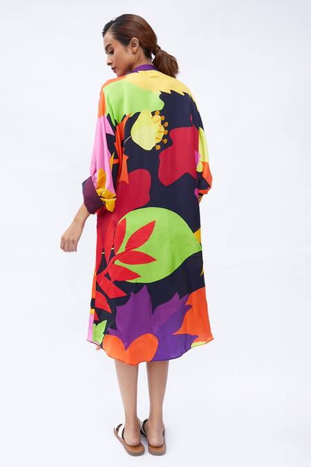 Multi Color Collared The Brisk Flow Printed Dress