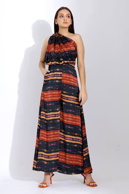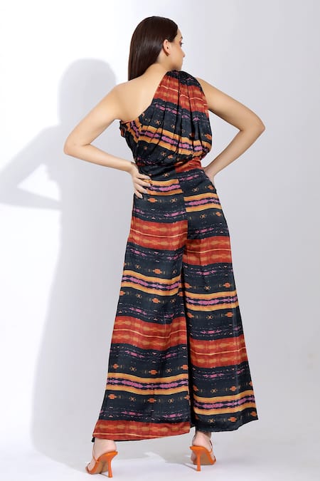 Buy_Studio Surbhi_Red Georgette, Satin One Shoulder Printed Jumpsuit _Online_at_Aza_Fashions