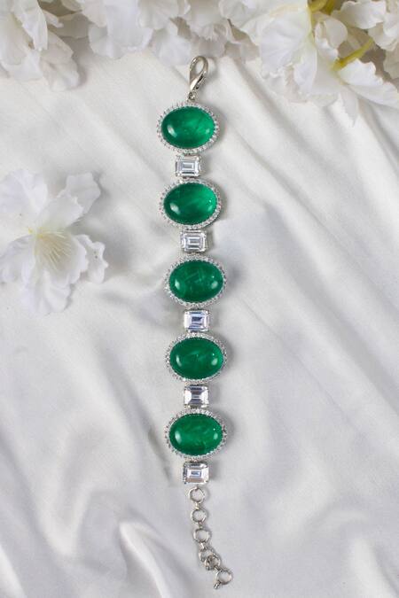Green doublet stone embellished bracelet featuring a lobster clasp closure