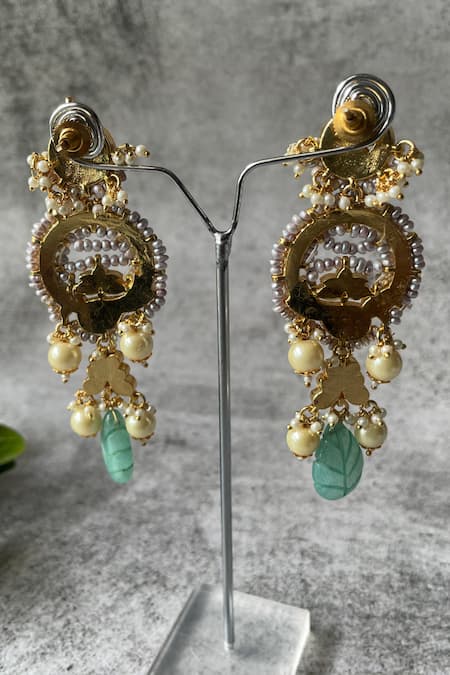 Studio6 Jewels_Multi Color Stones, Gota Patti Floral Crecent Kundan Studded Earrings _Online_at_Aza_Fashions