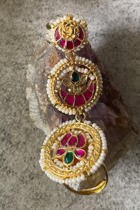 Adjustable design for comfortable fit, Kundan and pearl embellishments, Intricate floral blossom motifs
