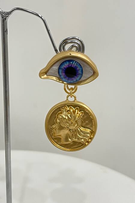 Buy_Studio6 Jewels_Gold Plated Eye Motif Dangle Earrings_at_Aza_Fashions
