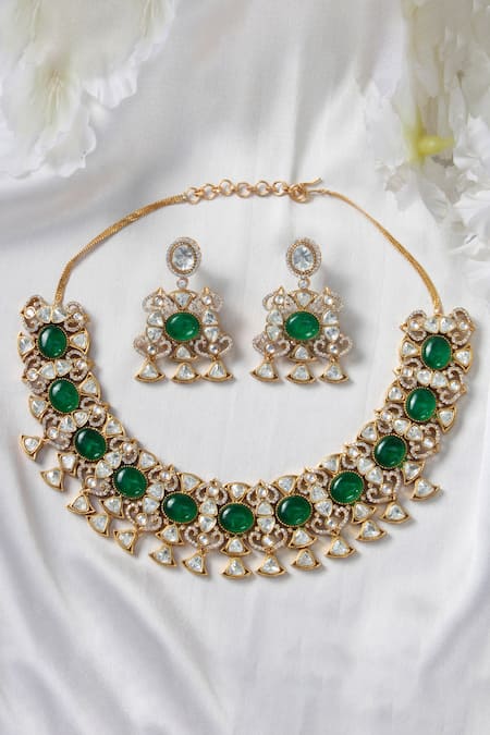 Green Stones, Diamonds Kundan And Embellished Necklace Set