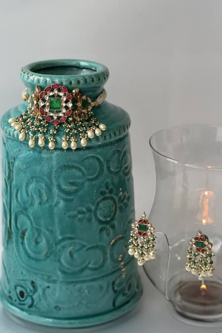 Gold plated meenakari design, Adjustable dori closure for comfort, Intricate pearl and kundan embellishments