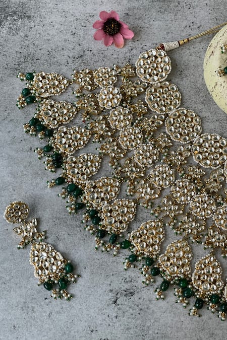 Buy_Studio6 Jewels_Green Pearls, Stones Parampara Uncut Pachhi Choker Necklace Set _at_Aza_Fashions