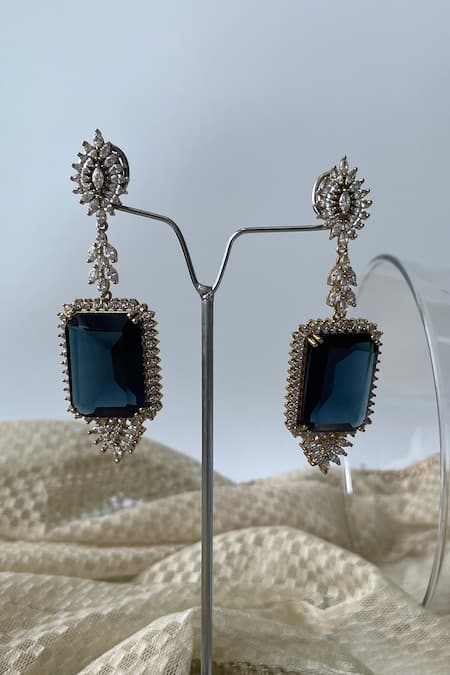 Antique finish with drop design, Square cut blue stones, Clear stone embellishments