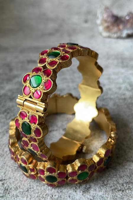 Multi Color Stones Embellished Floral Bangles- Set Of 2