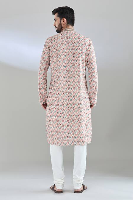 Buy_Arihant Rai Sinha_Orange Cotton, Polyester Geometric Print Kurta Set_Online_at_Aza_Fashions