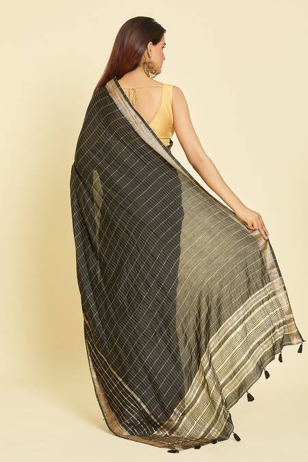 Black Chanderi Striped Saree With Unstitched Blouse Piece