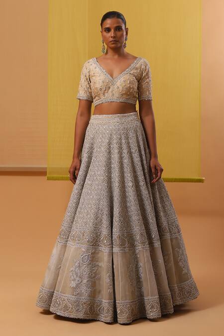 Off White , Organza, Barika Swarovski Embroidered Bridal Lehenga Set
