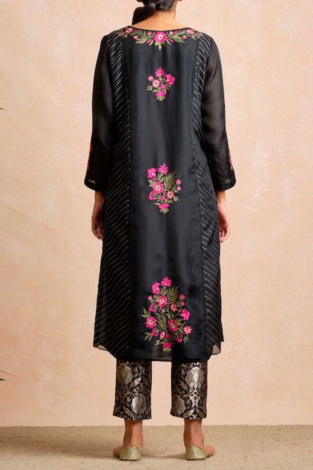 Black Banarasi, Kora Round Embroidered Kurta Set