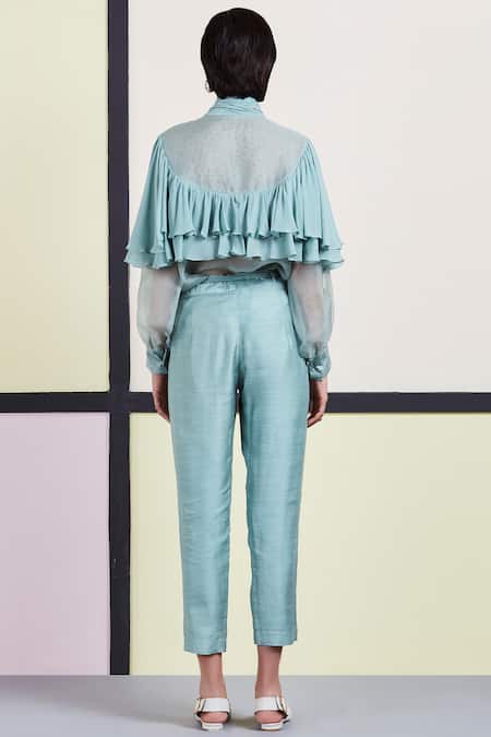Balloon sleeves, High collar, Frill detail, Cuff sleeves, Note:, Pant worn by the model is not for sale