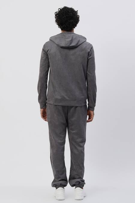 Grey Suede Hoodie And Joggers Set