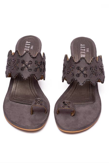Buy_The Alter_Grey Suede Kolhapuri Block Heels_at_Aza_Fashions