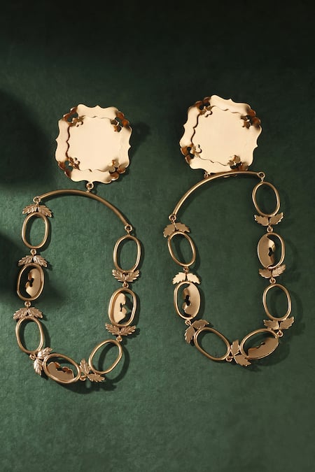 Gold danglers featuring a lush bloom ambience design with intricate detailing