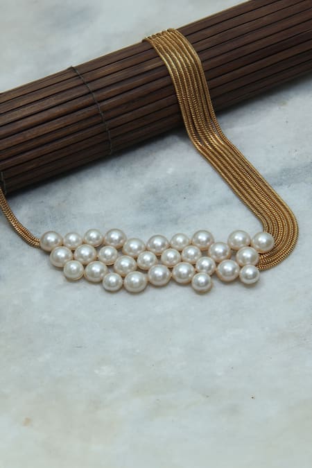 White pearls with gold chain