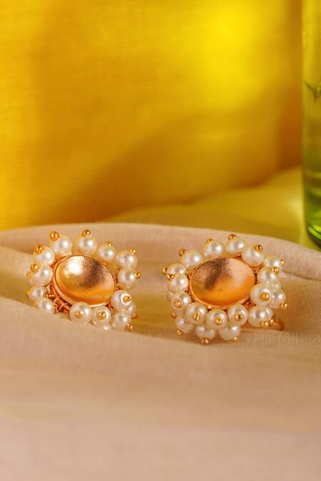 Gold Plated Pearls Embellished Ear Buttons