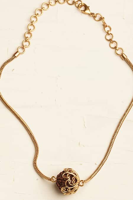 A gold choker featuring a rudraksha bead with intricate metalwork.