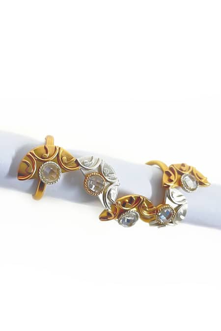 Gold Plated Crystals Sumerian Sail Fan Double Finger Ring