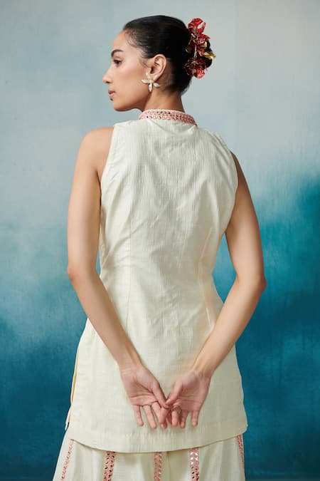 White Silk, Organza Gota Patti, Mirrors, Embroidery, Straight Kurta Gharara Set