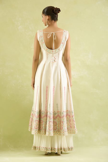 White Organza, Georgette, Silk Embroidery, Mirrors Bloom Vine Anarkali Set