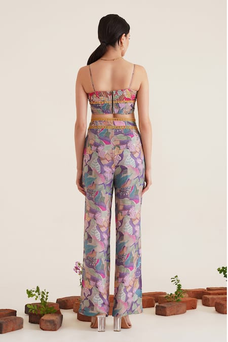 Purple floral printed bralette featuring a sweetheart neckline and lace detailing