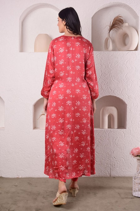 Buy_Surabhi Arya_Red Modal Satin Floral, Sequin And Beads Work Asymmetric Kurta & Tulip Pant Set_at_Aza_Fashions