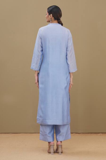 Blue Kurta And Palazzo Chanderi Dupatta Chiffon Round Set