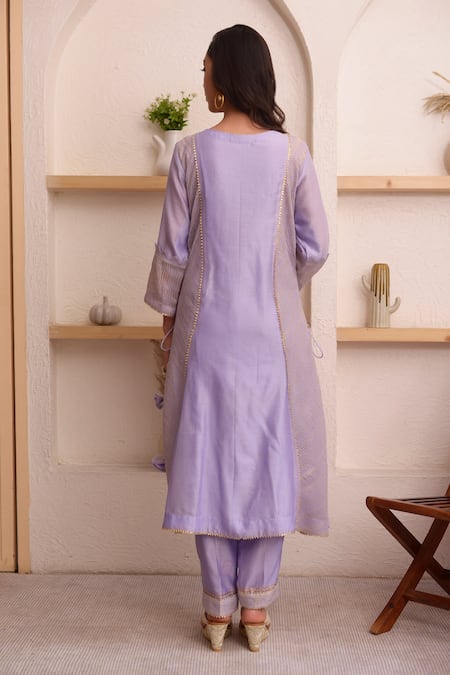 Buy_Surabhi Arya_Purple Tissue, Chanderi, Tabby Silk Floral, Gota Keyhole Embroidered Kurta Set_Online_at_Aza_Fashions