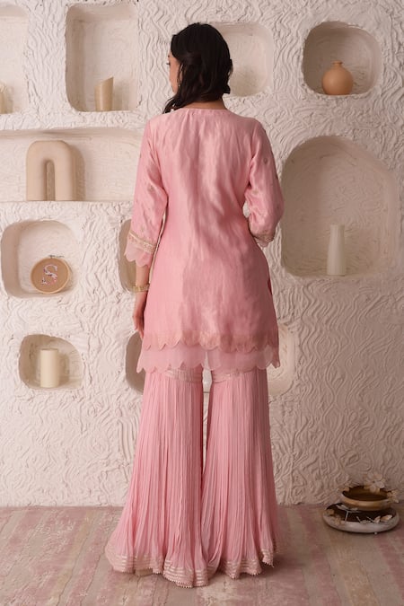 Pink Organza, Tissue, Georgette Gota Patti, Thread Embroidered Kurta Sharara Set