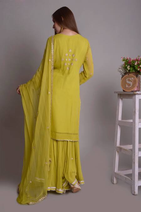 Buy_Surabhi Arya_Green Chiffon, Georgette Hand Embroidered Kurta Set_Online_at_Aza_Fashions