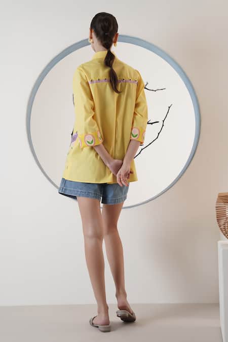 Yellow Poplin Embroidery Collared Lemon Shirt